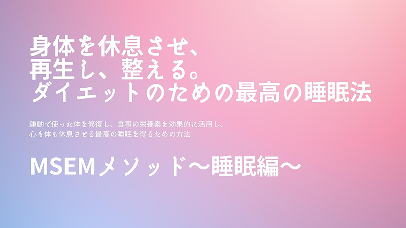 MSEMメソッド~睡眠編~ 身体を休息させ、再生し、整える。 ダイエットのための最高の睡眠法